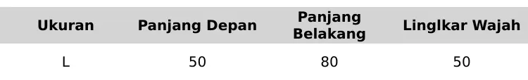 Panjang depan : 50cm (dihitung dari bawah dagu)